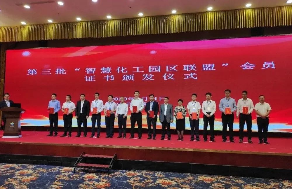 本屆大會上,包括南大環保在內的10家單位加入智慧化工園區聯盟,呂振華總經理代表公司上臺領取聯盟成員證書并合影留念。隨后,呂總作為專家評委參加了全國十家化工園區創建示范工作的總體評估。